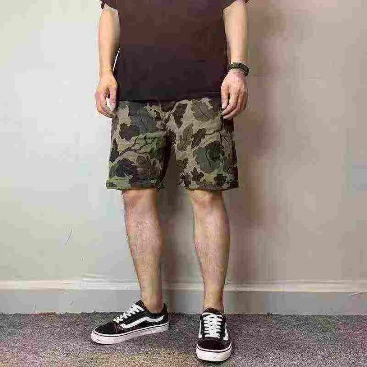 全清7.843件夏季薄款工装裤 树叶迷彩短裤男潮个性沙滩裤直筒休闲纯棉四分五...