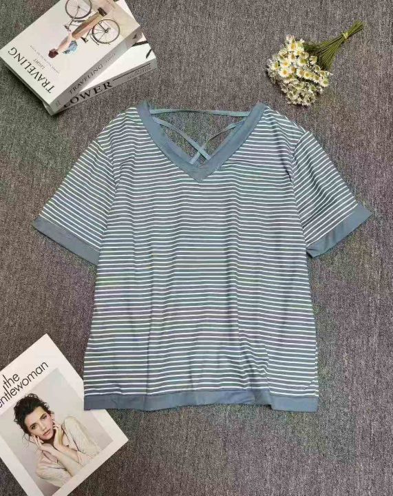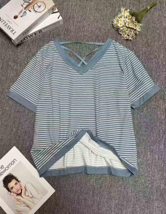 新款女装条纹宽松显瘦遮肚子上衣短袖T,大版型,有独立包装,数量100件左右,L-2xl,全清3.9。 货号:1323