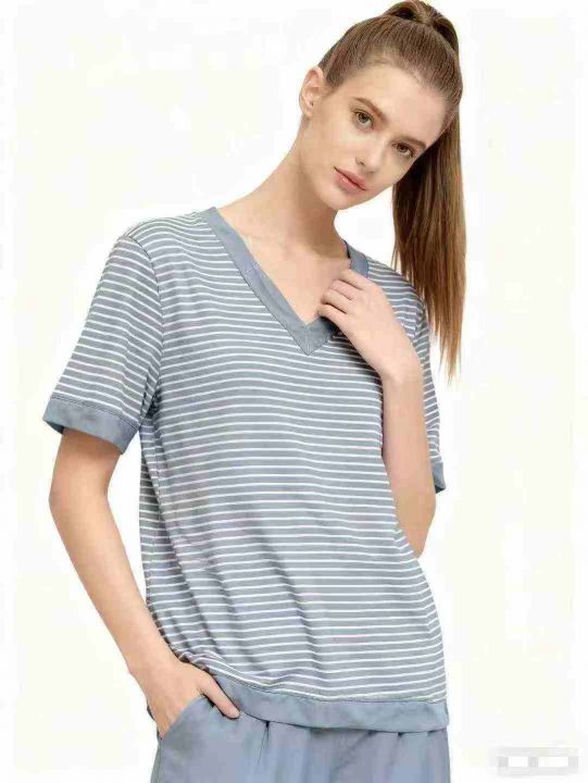 新款女装条纹宽松显瘦遮肚子上衣短袖T,大版型,有独...