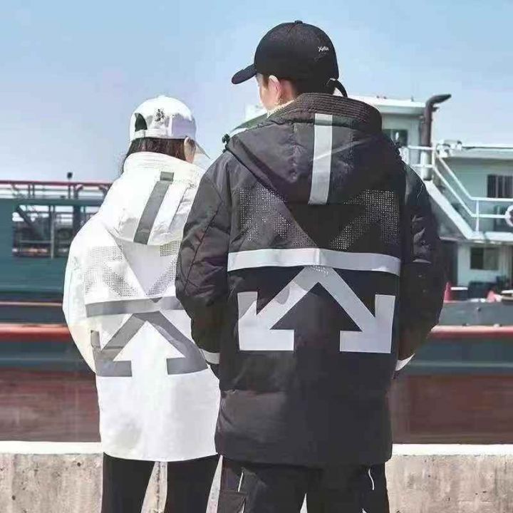 2000件潮牌镂空设计反光印花男女同款羽绒服外套 尺码M-4XL (M码都可以穿到135斤)全部独立拉链包装 全清48.8。 货号:1303