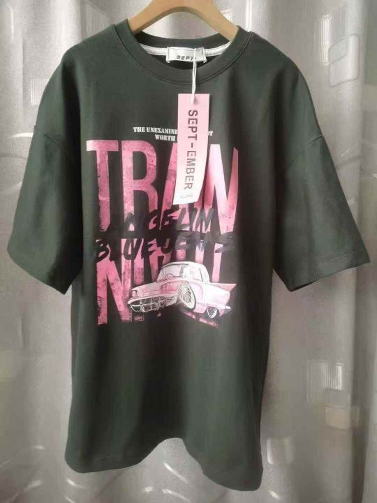 时尚宽松洋气印花短袖T,图片款,领口包边到肩颈,品质好,350件左右,全清...