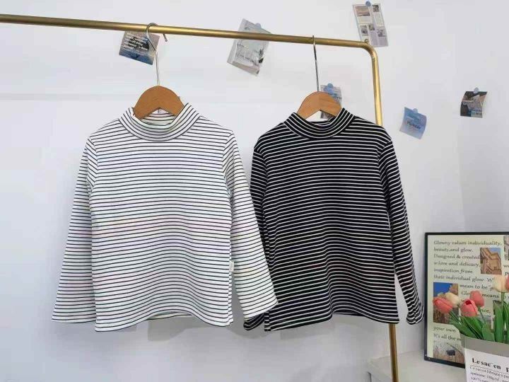 实体店下架时尚秋冬童装条纹加绒打底衣 200件左右 码数100-160 单款2色 货品干净 1手码1包 婴儿绒 面料柔软舒适 全清5.8。 货号:1303
