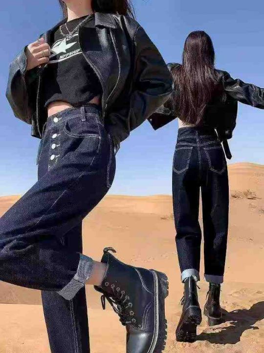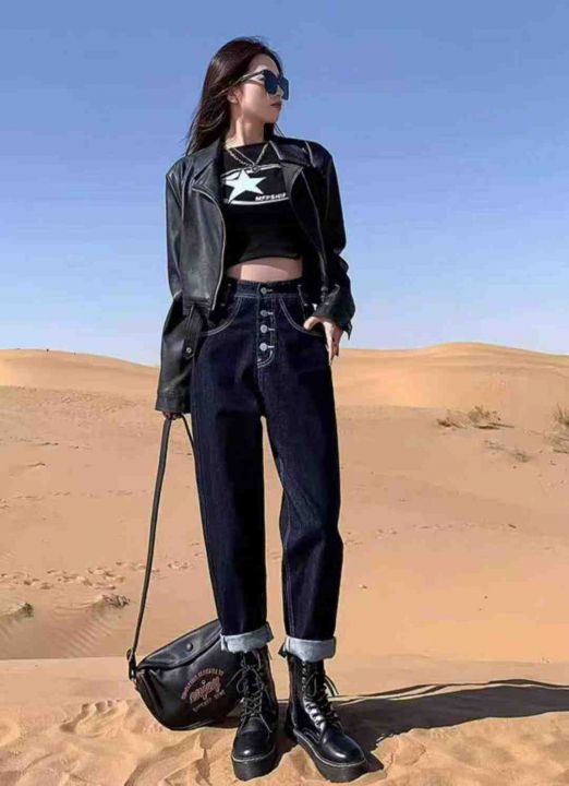 秋季新品洗水棉网红爆款高腰宽松牛仔老爹哈伦裤,独立...