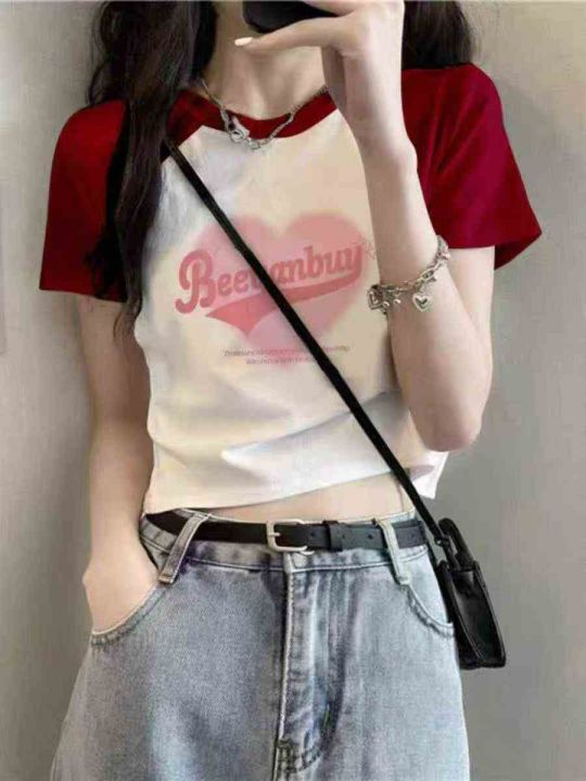 夏季新款甜辣妹提花小众减龄bm别致插肩爱心字母针织短...