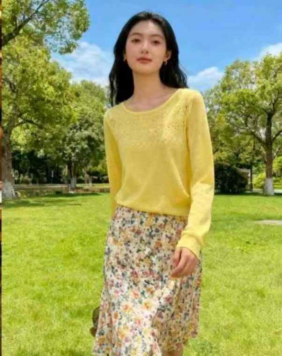春夏新款镂空花纹设计款冰丝竹节麻针织套头毛衣,独立...