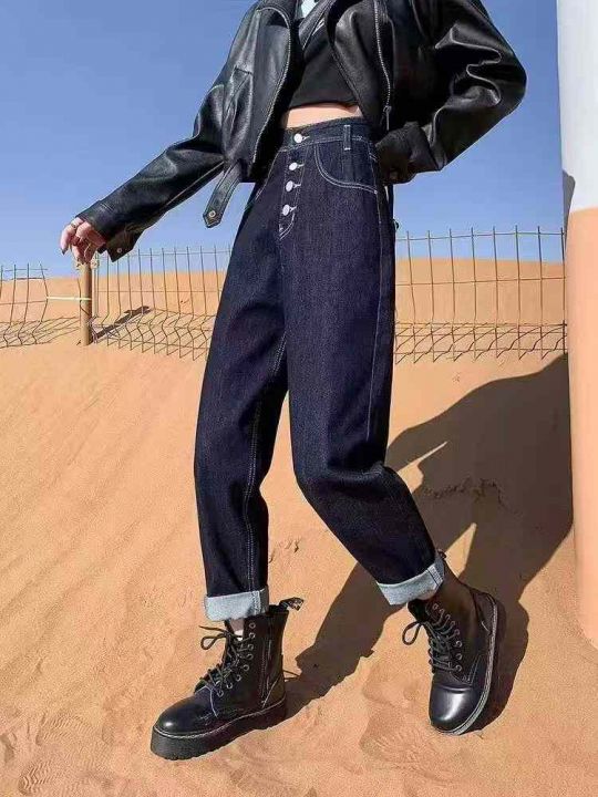 秋季新品洗水棉网红爆款高腰宽松牛仔老爹哈伦裤,独立...