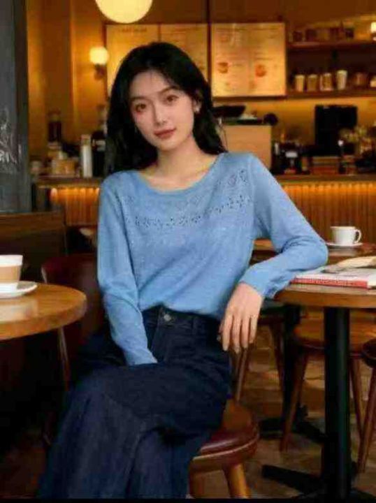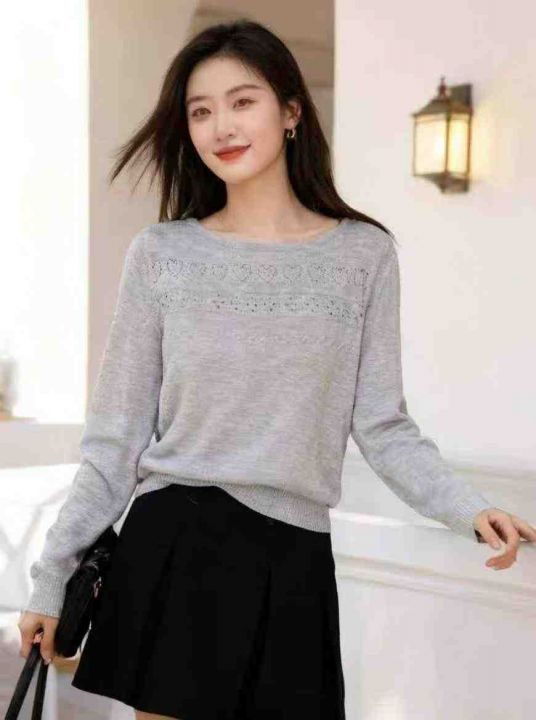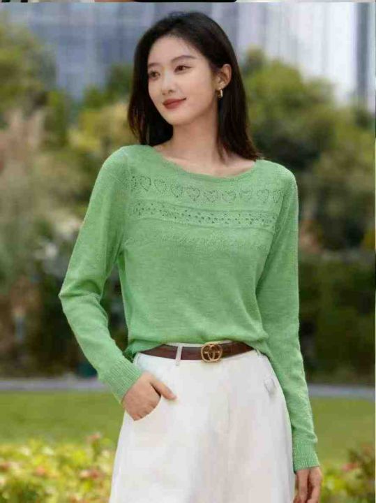 春夏新款镂空花纹设计款冰丝竹节麻针织套头毛衣,独立...