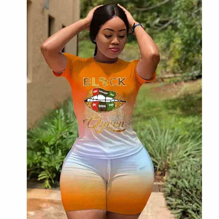 7.5清2042款:欧美休闲双短渐变色嘴唇印花两件套,整款两色,数量:193套,...