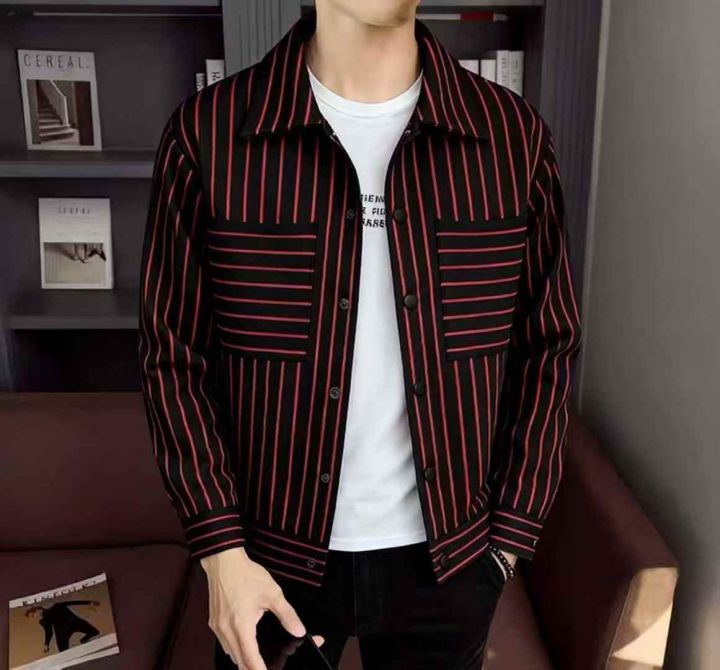 秋冬季短款男士条纹翻领精神小伙时尚潮流加绒夹克外套,独立包装带吊牌,码数 S-2XL码, 1176件左右, 腾仓库,全清6.99元亏本处理!分货加一!。 货号:1303
