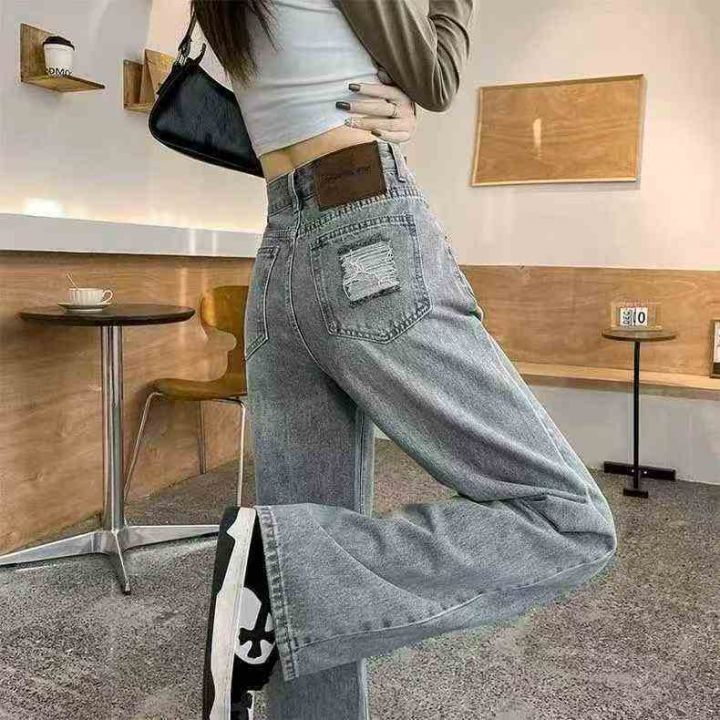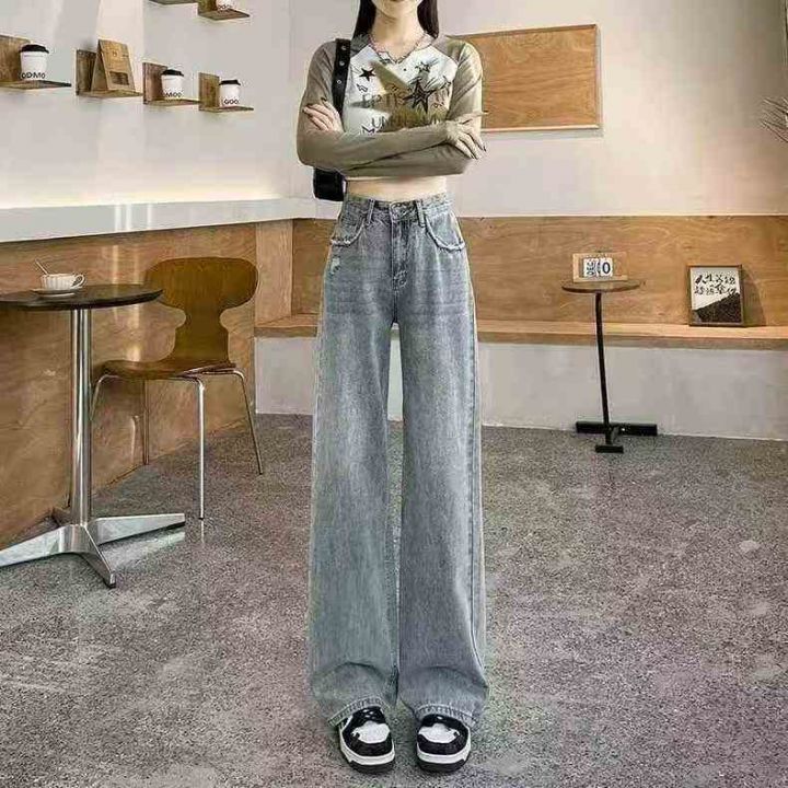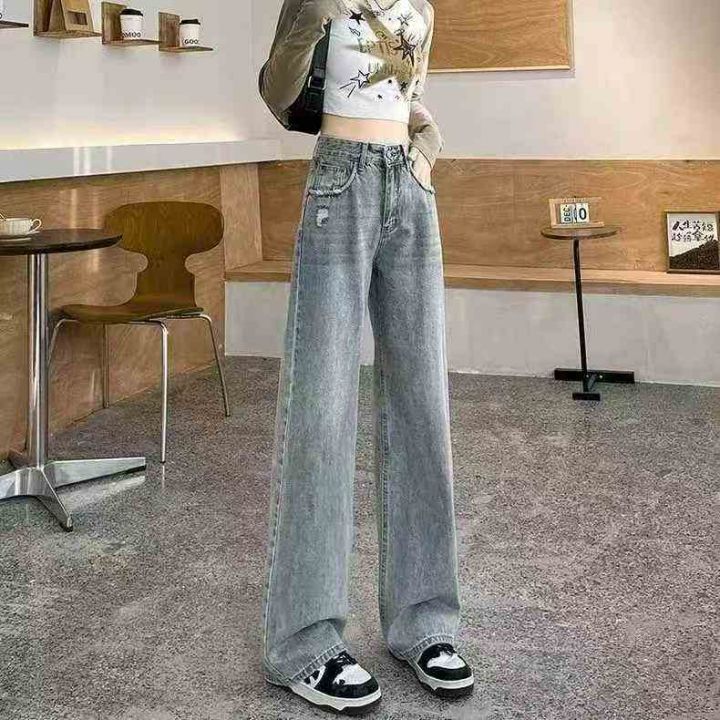 秋冬新款复古洗水棉直筒阔腿牛仔裤,独立包装带吊牌,...