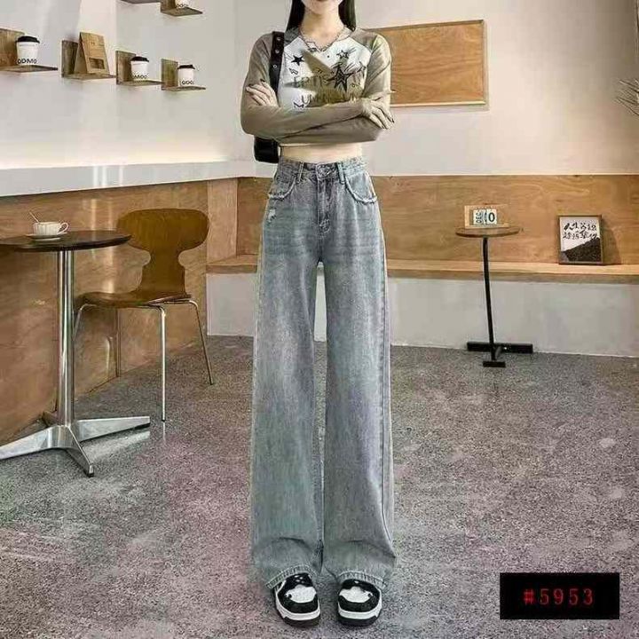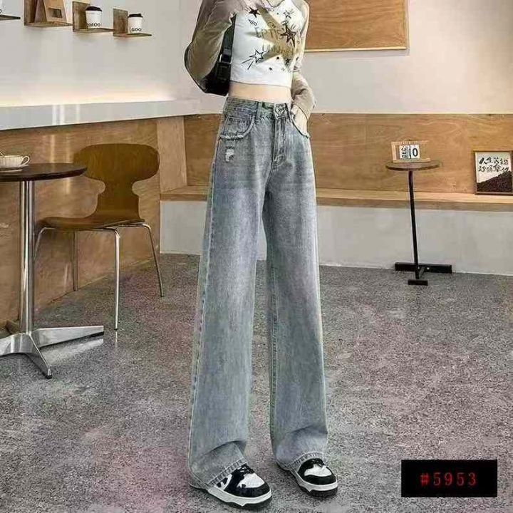 秋冬新款复古洗水棉直筒阔腿牛仔裤,独立包装带吊牌,...