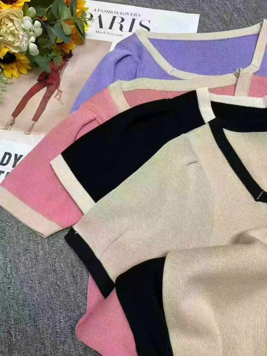 夏季新款大码宽松弹力显瘦方领冰丝针织短袖,独立包装,均码面料柔软舒适弹力,宽松版,单款4色米色黑色多,4600件,全清5.9元超低价秒杀!分货加一!