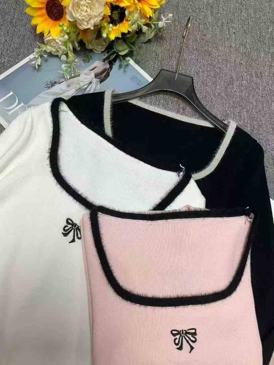 早秋新款小香风撞色刺绣减龄百搭拼接水貂毛设计款套头毛衣,独立包装,黑白色为主,均码面料软糯舒适弹力大,800件,全清6.9元超低价秒杀!分货加一!