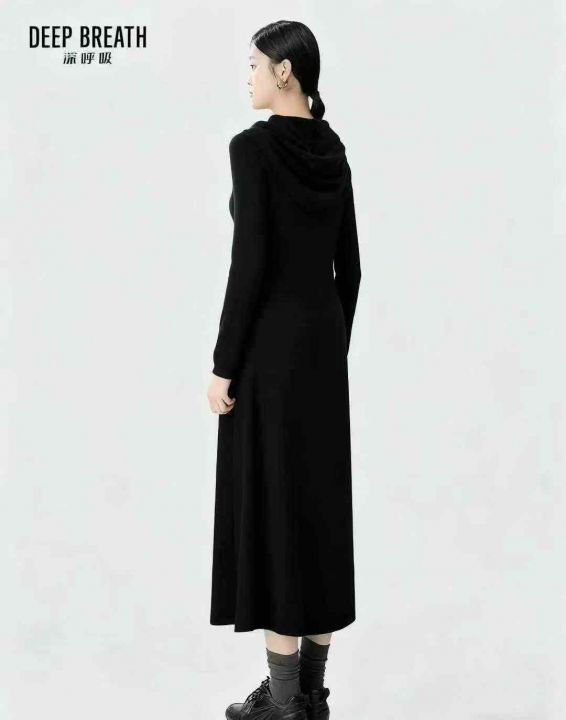 新款法式连帽连衣裙气质修身长袖长裙,高弹力,领口包...