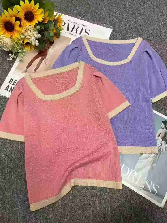 夏季新款大码宽松弹力显瘦方领冰丝针织短袖,独立包装,均码面料柔软舒适弹力,宽松版,单款4色米色黑色多,4600件,全清5.9元超低价秒杀!分货加一!