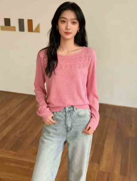 春夏新款镂空花纹设计款冰丝竹节麻针织套头毛衣,独立...