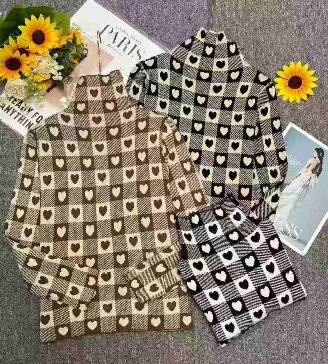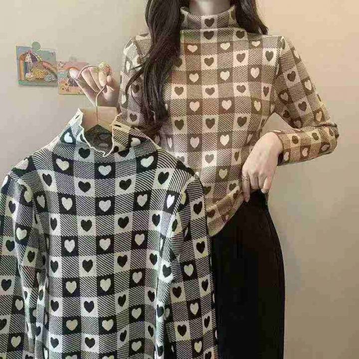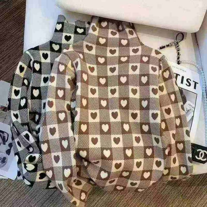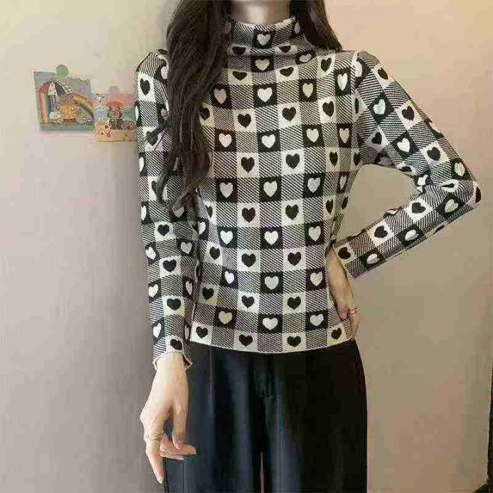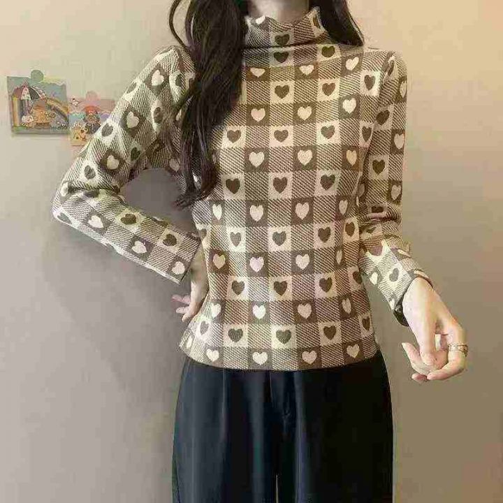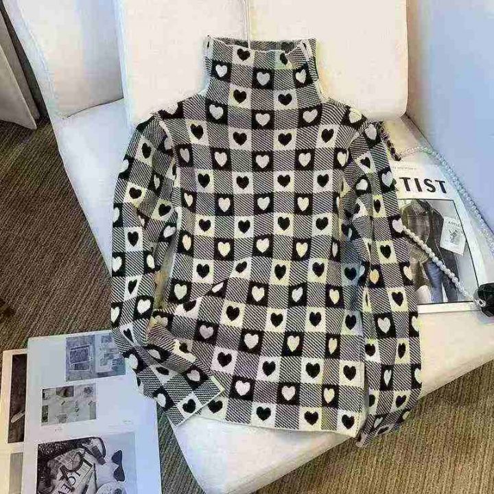 秋装新款韩版洋气设计感爱心高领打底包芯纱套头毛衣,...