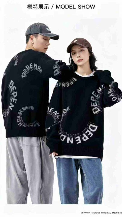 秋冬新款宽松慵懒风男女同款提花圆领套头毛衣,独立包...