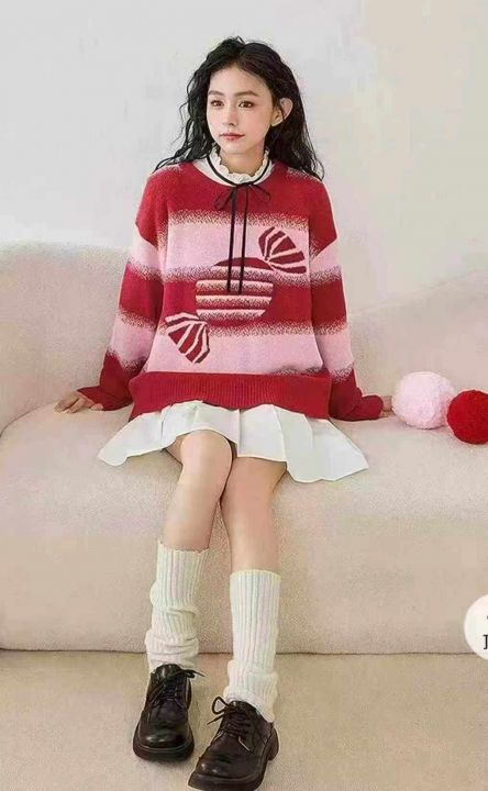 秋冬新款宽松慵懒风乐町草莓奶糖新年红氛围感包芯纱提花钻进套头毛衣,独立包装,均码面料软糯厚实,300件,全清9.9元超低价秒杀!分货加一!