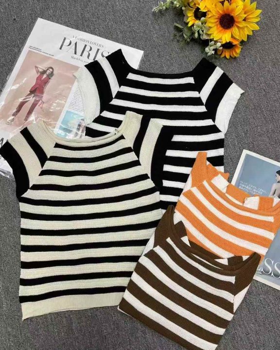 夏季新款气质层次感飞飞袖甜美减龄撞色条纹针织T桖,独立包装,均码面料柔软舒适弹力大,726件,全清4.9元超低价秒杀!分货加一!。 货号:1303