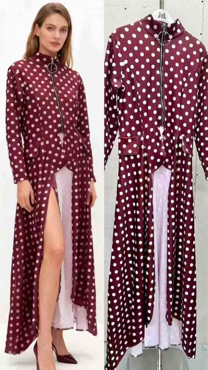 New polka dot zip-up trench coat dress, Size:S-2XL ,1 design many colors.