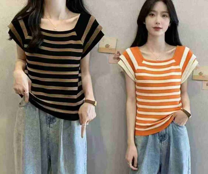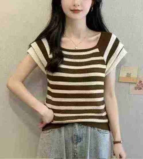 夏季新款气质层次感飞飞袖甜美减龄撞色条纹针织T桖,独立包装,均码面料柔软舒适弹力大,726件,全清4.9元超低价秒杀!分货加一!
