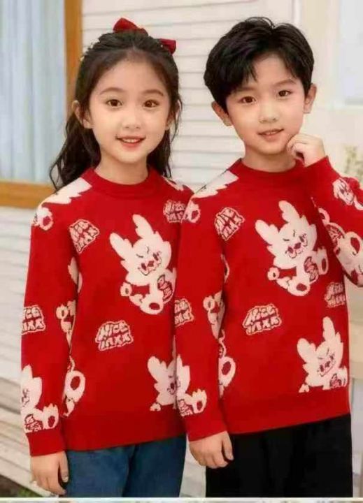 秋冬新款男女童中大童童装复古红色提花加厚包芯纱圆领套头毛衣,独立包装带吊牌,码数100-150码,1200件,全清6.9元超低价秒杀!分货加一!