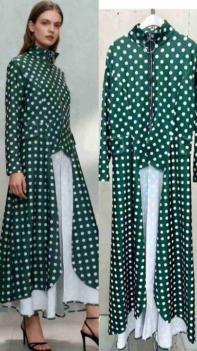 New polka dot zip-up trench coat dress, Size:S-2XL ,1 design many colors.