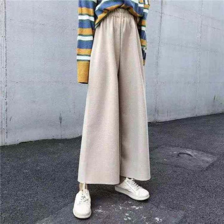秋冬新款净版宽松简约松紧腰直筒阔腿毛呢裤,独立包装,码数S-XL码,465件...