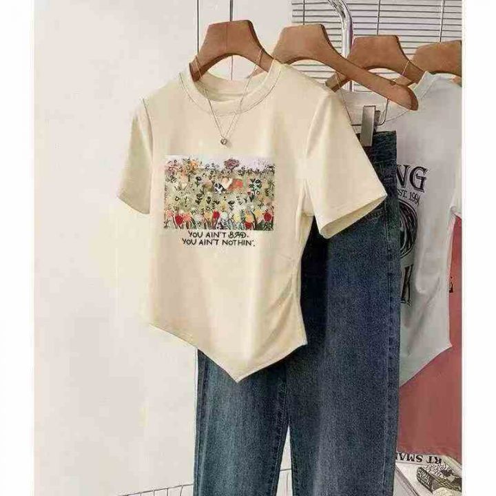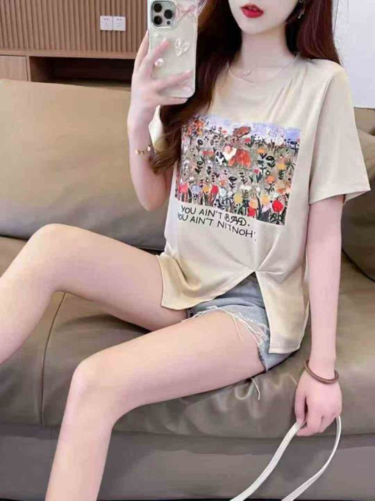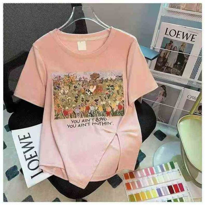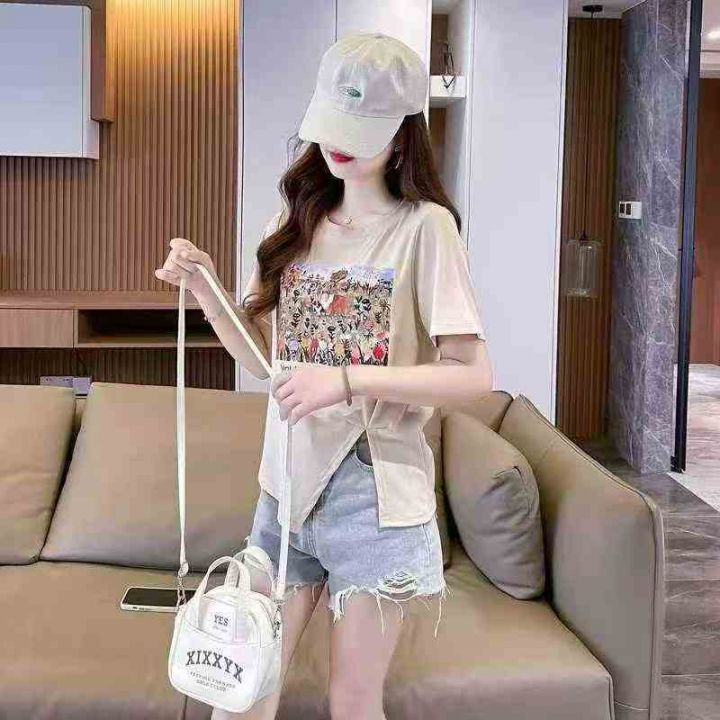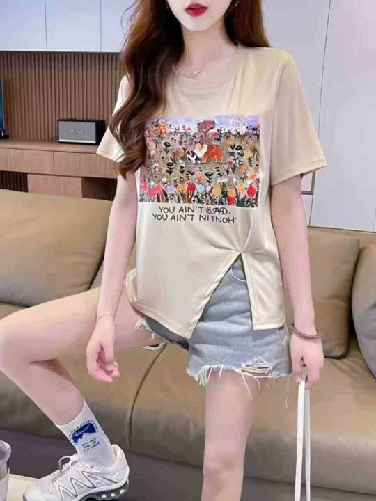 设计感小众不规则开叉短袖t恤女2025新款别致甜辣妹正肩上衣 290件 码数L-4XL 分货➕1,独立包装(货号1126#60)