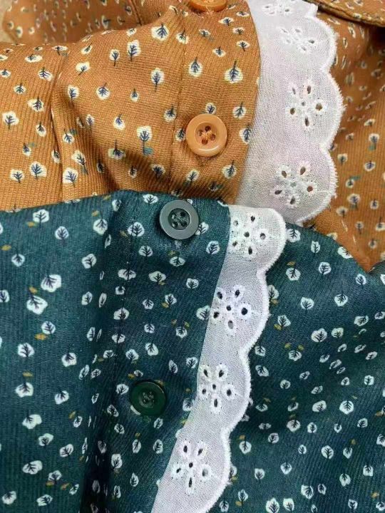 娃娃领,蕾丝花边,松紧袖口,