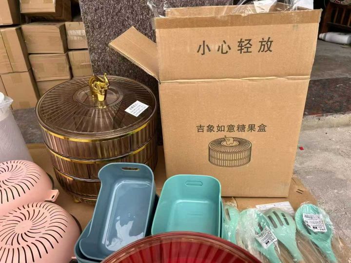 杂款糖果盘、收纳盒,2.7吨左右,几千块一吨...
