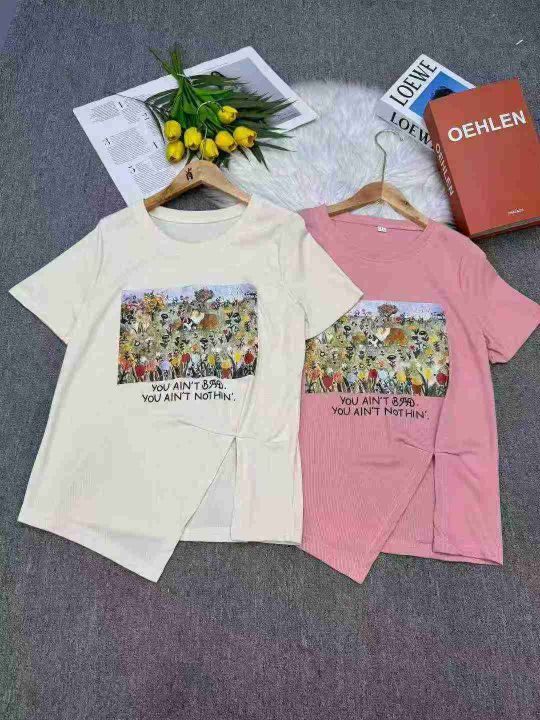 设计感小众不规则开叉短袖t恤女2025新款别致甜辣妹正肩上衣 290件 码数L-4XL 分货➕1,独立包装(货号1126#60)
