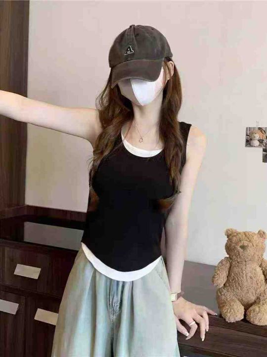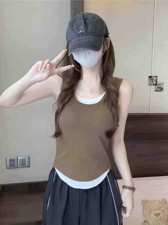 工厂回收500件辣妹复古带胸垫高弹力小众设计感假两件背心,码数M-L码。版型质量很好,面料柔软舒适有弹力,固定杯胸垫不走位,独立包装。分货➕0.5