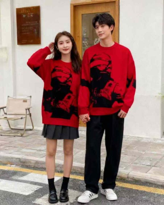 品牌原单大码宽松落肩男女同款提花加厚包芯纱套头毛衣...