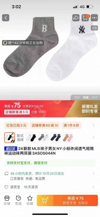 MLB 官网同款 现货6000左右 特价 纯棉 2双一袋。 ...
