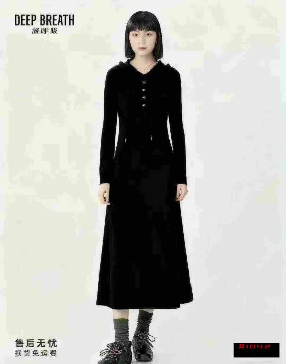 新款法式连帽连衣裙气质修身长袖长裙,高弹力,领口包边,有份量手感柔糯,独立包装,数量590件左右,码数2-7码,全清10.8,分货+1@_@