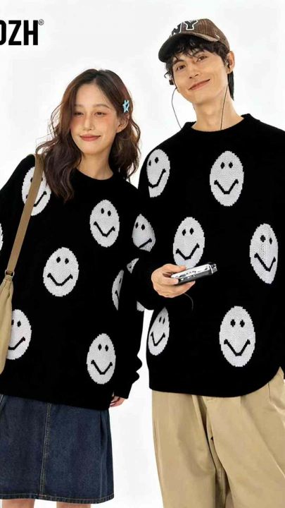 秋冬新款宽松慵懒风男女同款提花圆领套头毛衣,独立包...