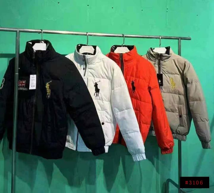 得物下架一批潮牌polo立领男女同款90白鸭绒保暖刺绣羽...
