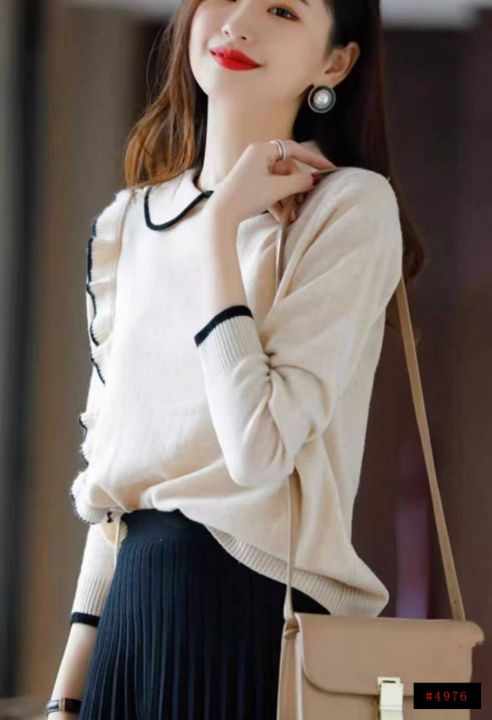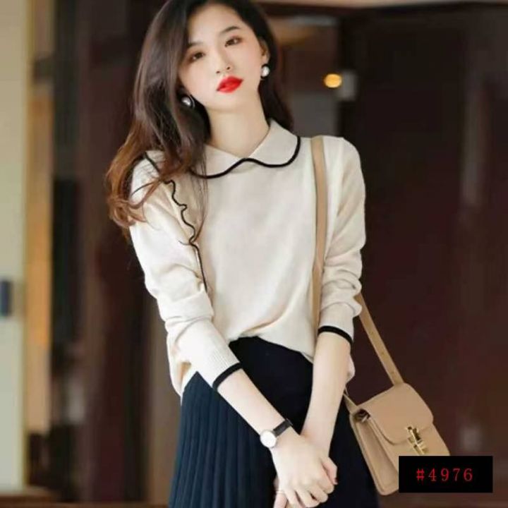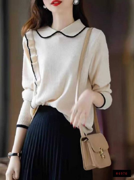 秋冬新款韩系温柔风撞色翻领长袖包芯纱套头毛衣,面料软糯舒适弹力大,宽松版,65件,全清7.9元超低价秒杀!@_@