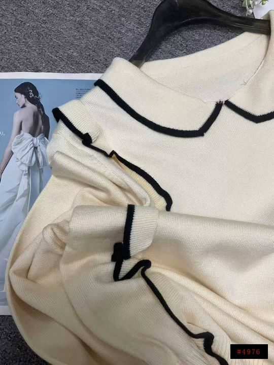 秋冬新款韩系温柔风撞色翻领长袖包芯纱套头毛衣,面料...