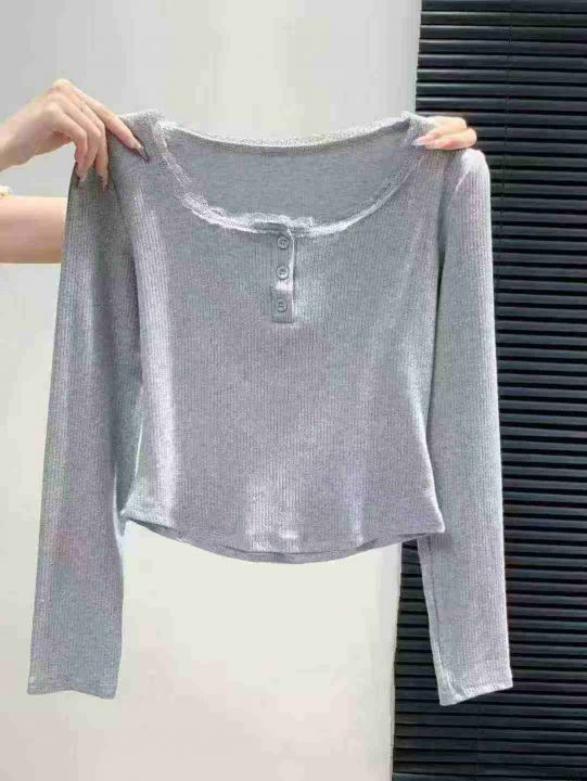 [發]蕾丝纽扣长袖打底332件