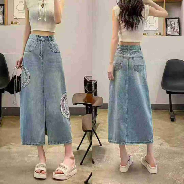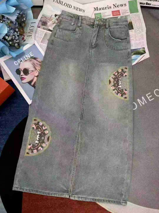 中国风宽松显瘦刺绣开叉长牛仔裙,单款单色2个长度,独立包装,数量300条XS-2XL码福利价12.8秒杀,分货加1(610·5520#)