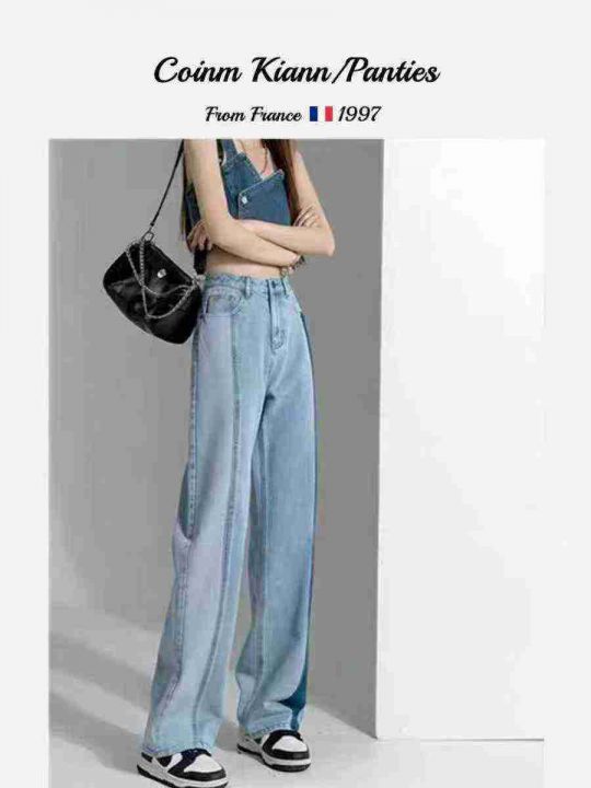 法式设计感高腰显瘦直筒女士阔腿牛仔裤,单款单色,独...