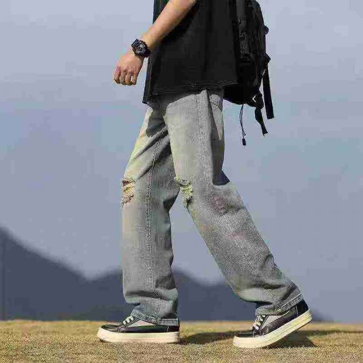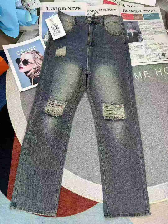 美式街头水洗破洞男士宽松阔腿牛仔裤,单款单色,独立...