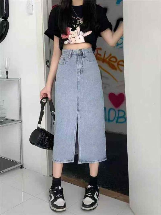 夏秋季新品洗水棉网红复古牛仔半身长裙,独立包装带吊...