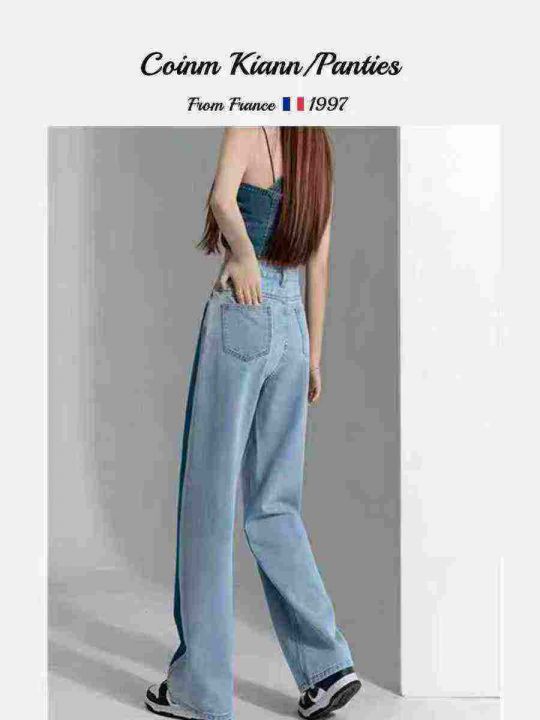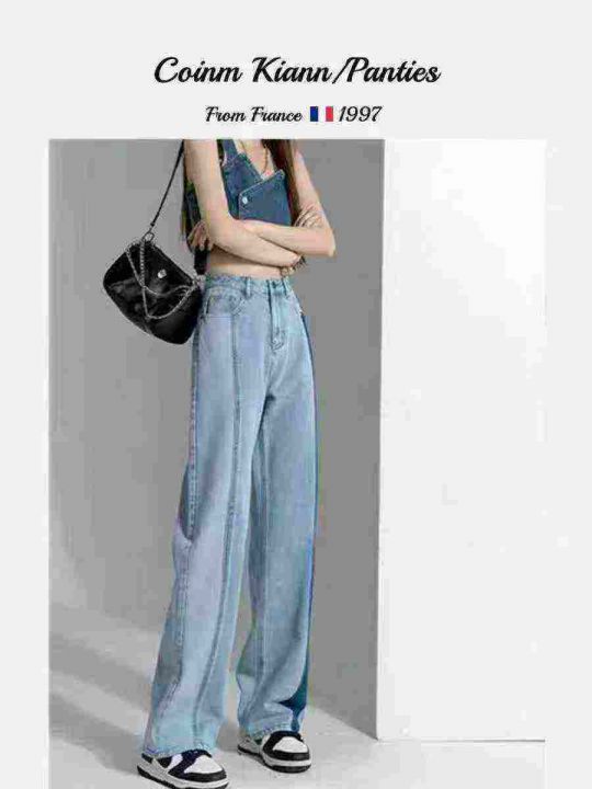 法式设计感高腰显瘦直筒女士阔腿牛仔裤,单款单色,独...