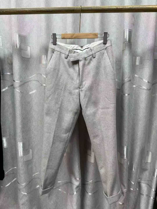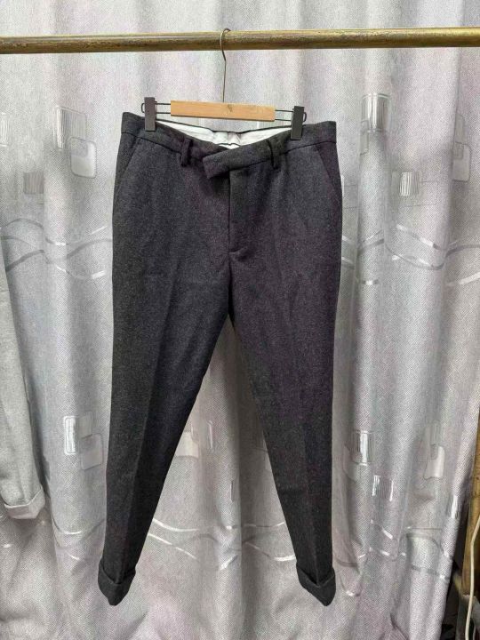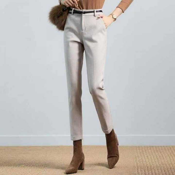秋冬小脚毛呢裤设计烟管女磨毛英伦高腰显瘦休闲西装裤...