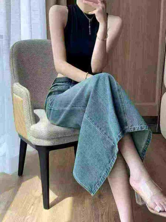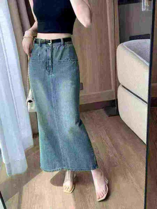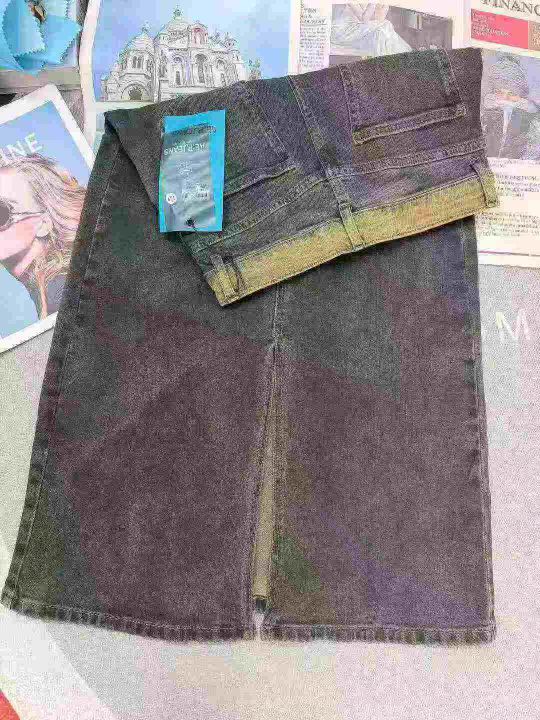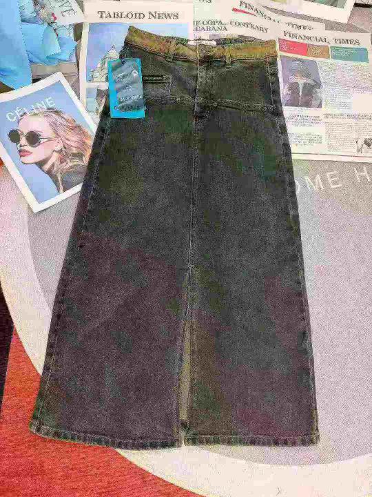 高腰弹力设计感中长款牛仔裙,单款单色,独立包装,数...