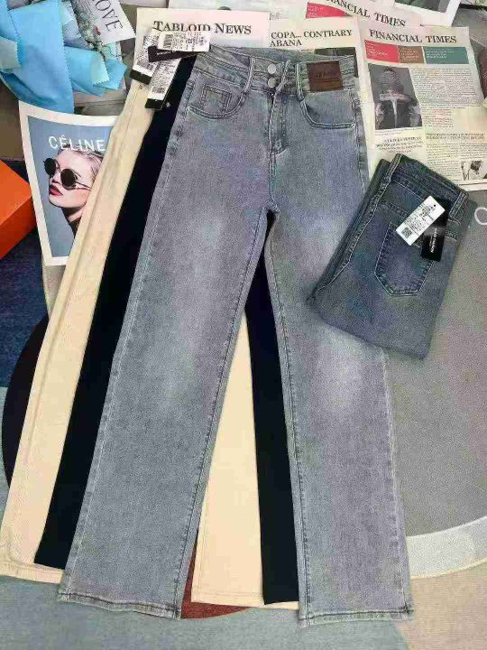 高腰显瘦直筒弹力牛仔裤,整款4个颜色,独立包装,数...
